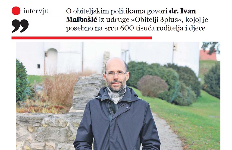 Predsjednik udruge Obitelji 3plus dr. sc. Ivan Malbašić dao je intervju za tjednik Glas Koncila u kojem je progovorio o nizu tema: ulozi države u podupiranju obitelji, važnosti demografske strategije, medijskoj stigmatizaciji obitelji s više djece…