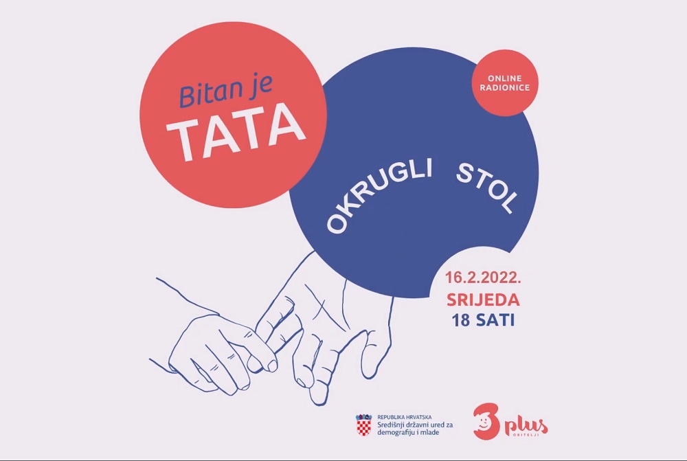 Snimka okruglog stola pod nazivom „Bitna je tata“ dostupna je na YouTube kanalu udruge Obitelji 3plus.