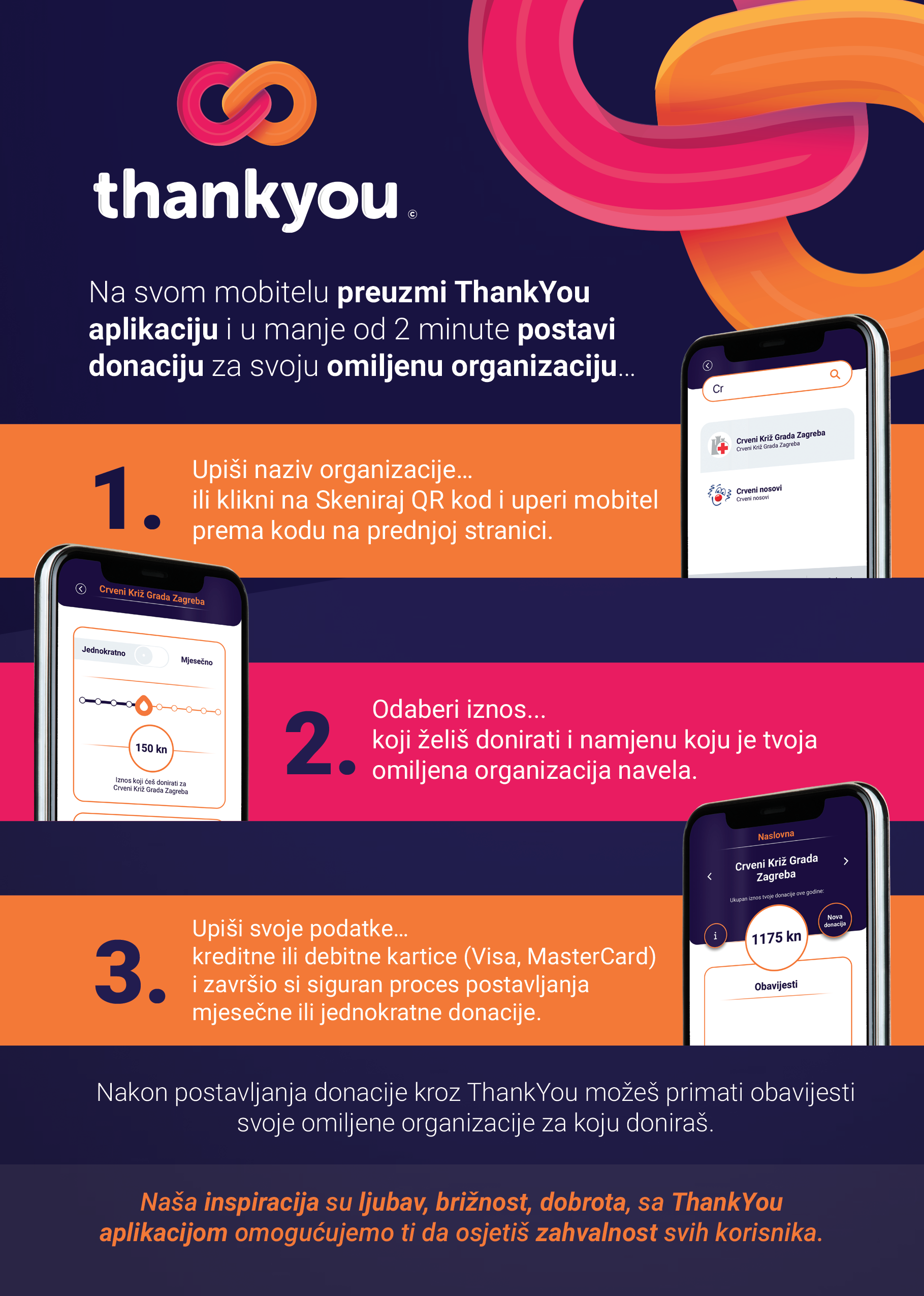 Donacije od sada možete uputiti jednostavnije nego ranije, i to putem mobilne aplikacije “ThankYou Hrvatska”, koju možete preuzeti na ovom linku: https://play.google.com/store/apps/details?id=com.gratigroup.thankyou.app
