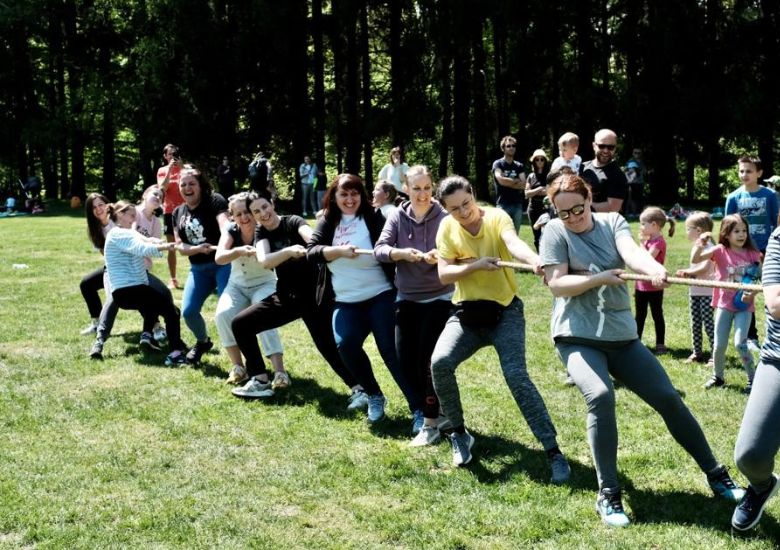 Igre smo organizirali na prostranoj livadi u srcu Parka Maksimir, obitelji su donijele svoje podloge i košare za piknik, te smo imali i rekvizite za slobodnu igru i rekreaciju. Obiteljske igre bez granica vodile su stručne kineziologinje, a igre su bile osmišljene i prilagođene svim dobnim skupinama. Igre smo otvorili igrom lovice i zagrijavanjem, a završili igrom potezanja užeta. Roditeljima se posebno svidjelo što je bilo igara za svaki uzrast i što smo se družili kao nekad bez mobitela. Roditelji su također pohvalili odličnu atmosferu, strpljenje i radost voditelja te zajedništvo roditelja kod potezanja užeta. Posebno smo zadovoljni jer su obitelji otišle sa susreta radosne, osnažene i zadovoljne. Više o atmosferi i cijelom susretu pogledajte na videu na našem YouTube kanalu.