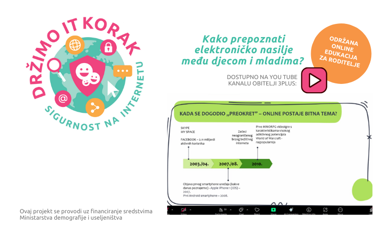 Naša prva edukativna online radionica u projektu Držimo IT korak održala se 12. veljače 2025. od 18-19 sati online na Zoom platformi. Educirati smo roditelje kako bi brže i jednostavnije prepoznali elektroničko nasilje, usvojili metode kako djeci pristupiti te što od djece u kojoj dobi očekivati. Roditeljima smo pružili podršku u korištenju digitalnih alata za podizanje razine sigurnosti i vremena korištenja ekrana u odgoju djece kroz ovaj projekt.